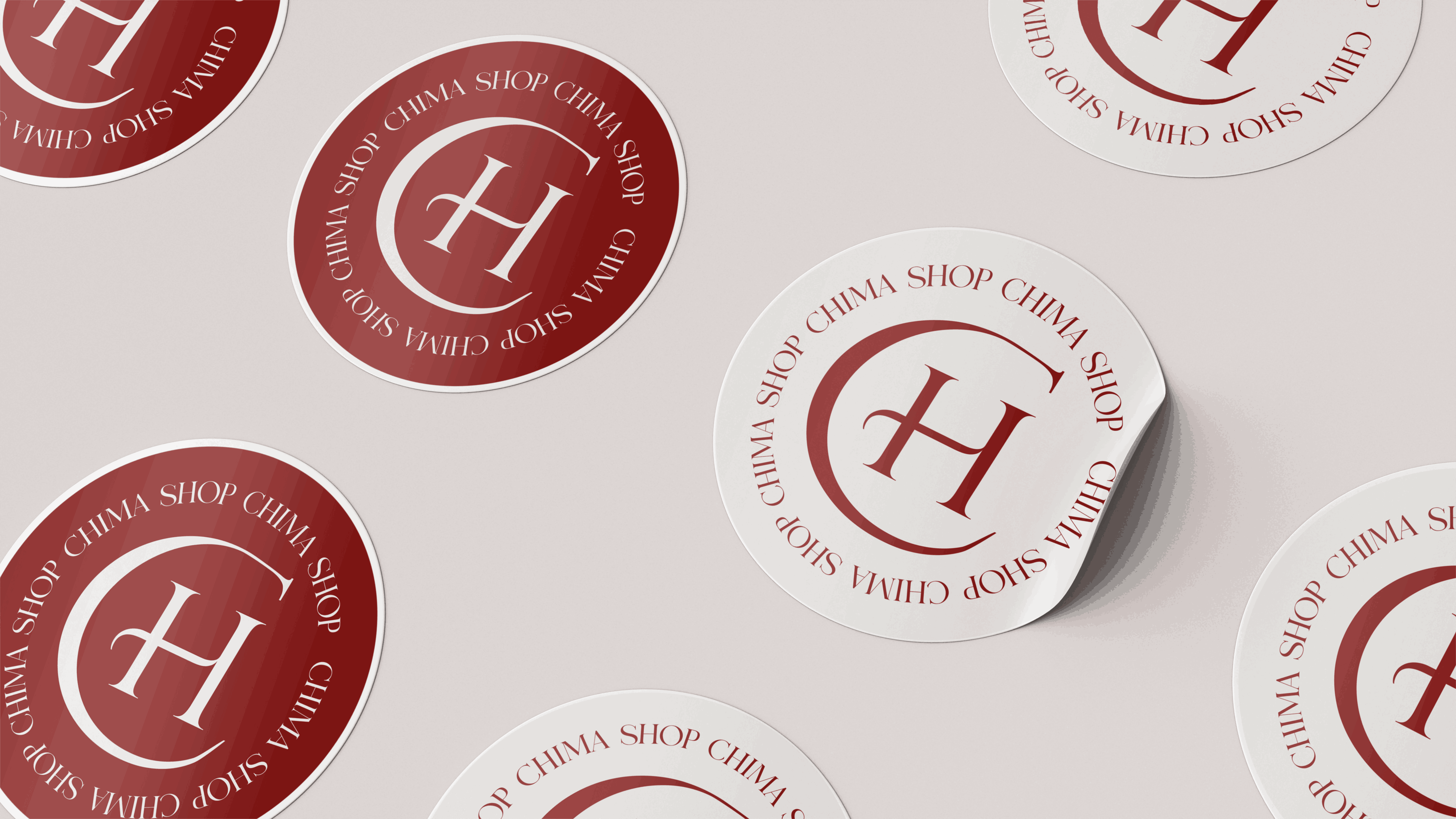 This project showcases a visual branding concept for a shop named "Chima." The design consists of a sophisticated logo with stylized typography, where "Chima" is written in elegant and curvy font with a circular badge displaying the letter "C" and "H" at its core.
